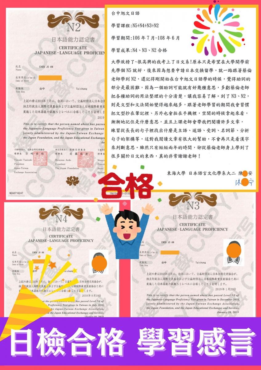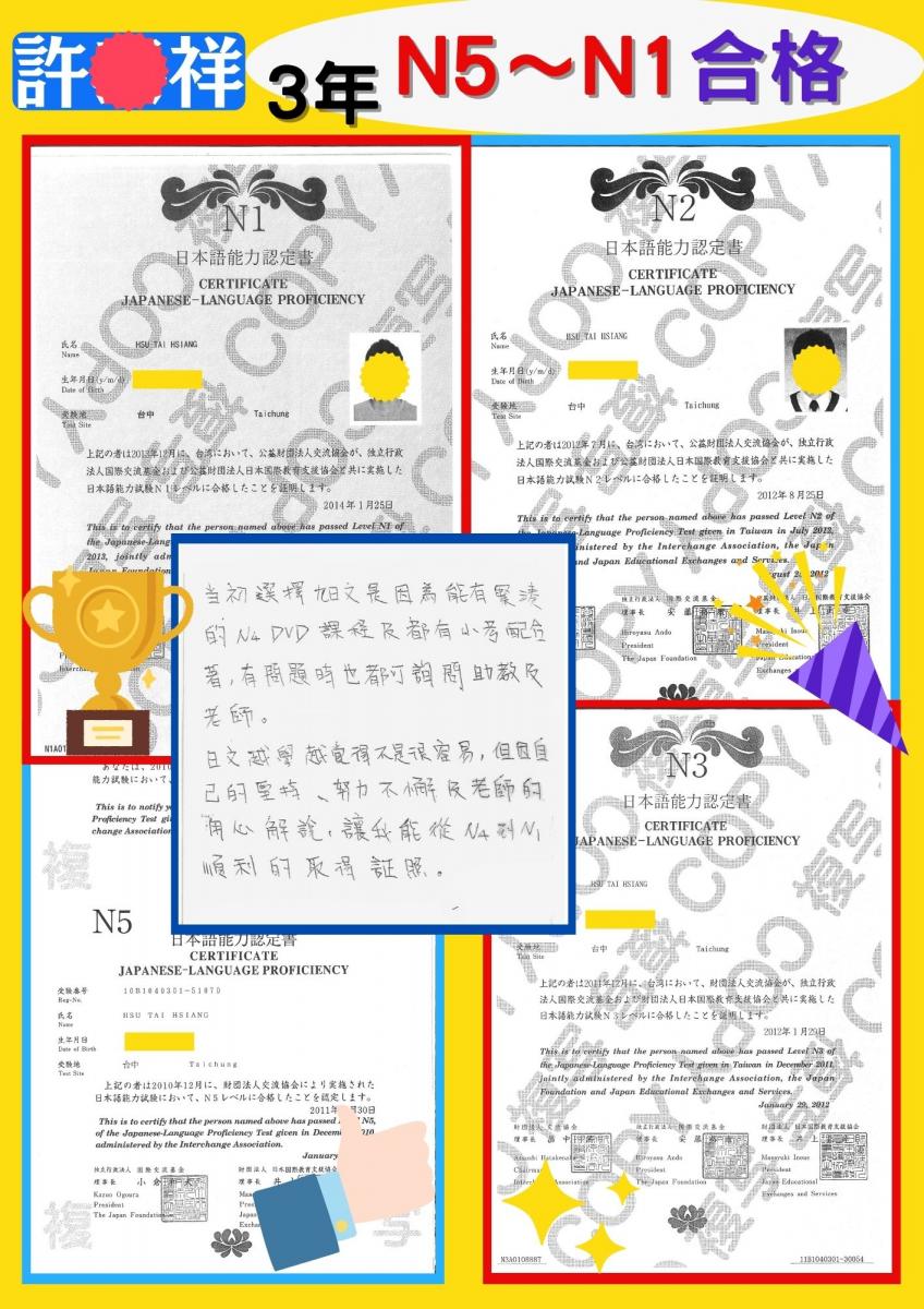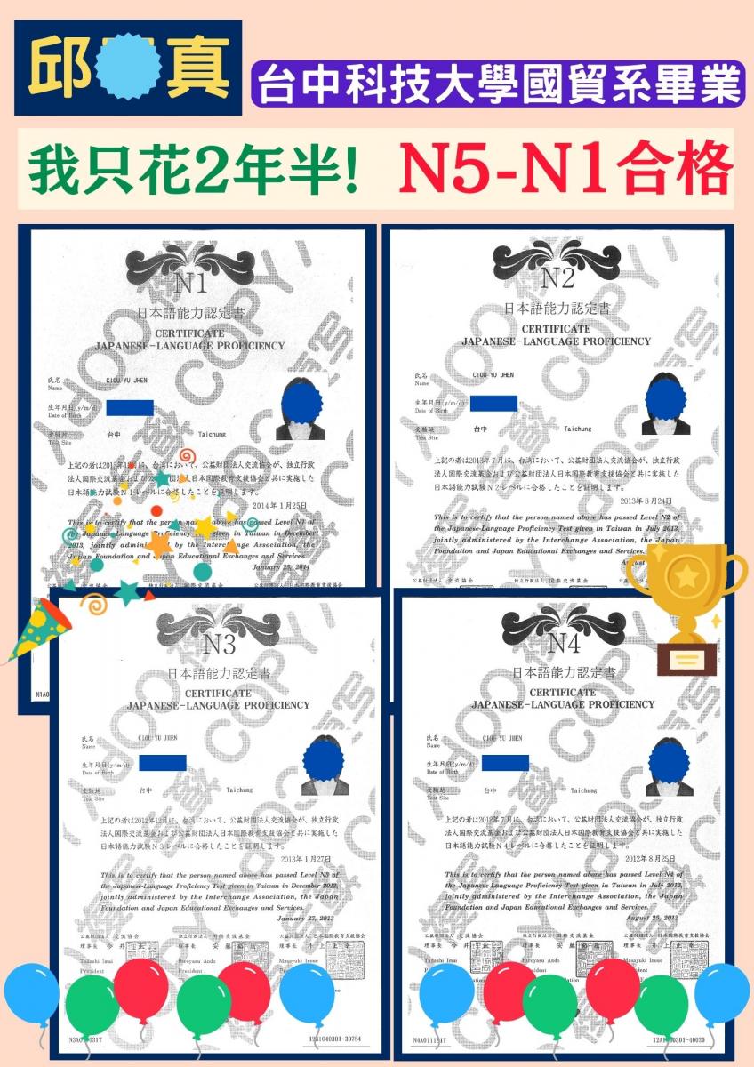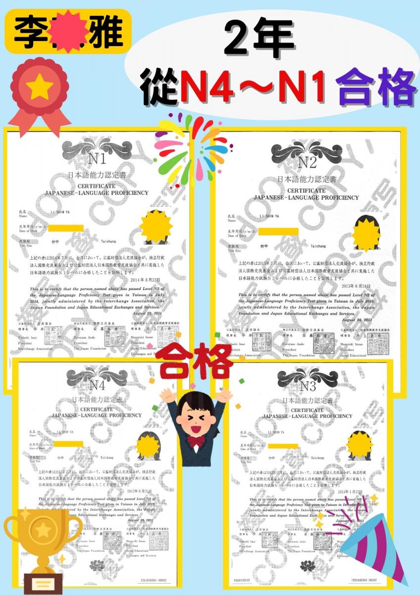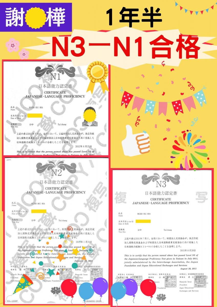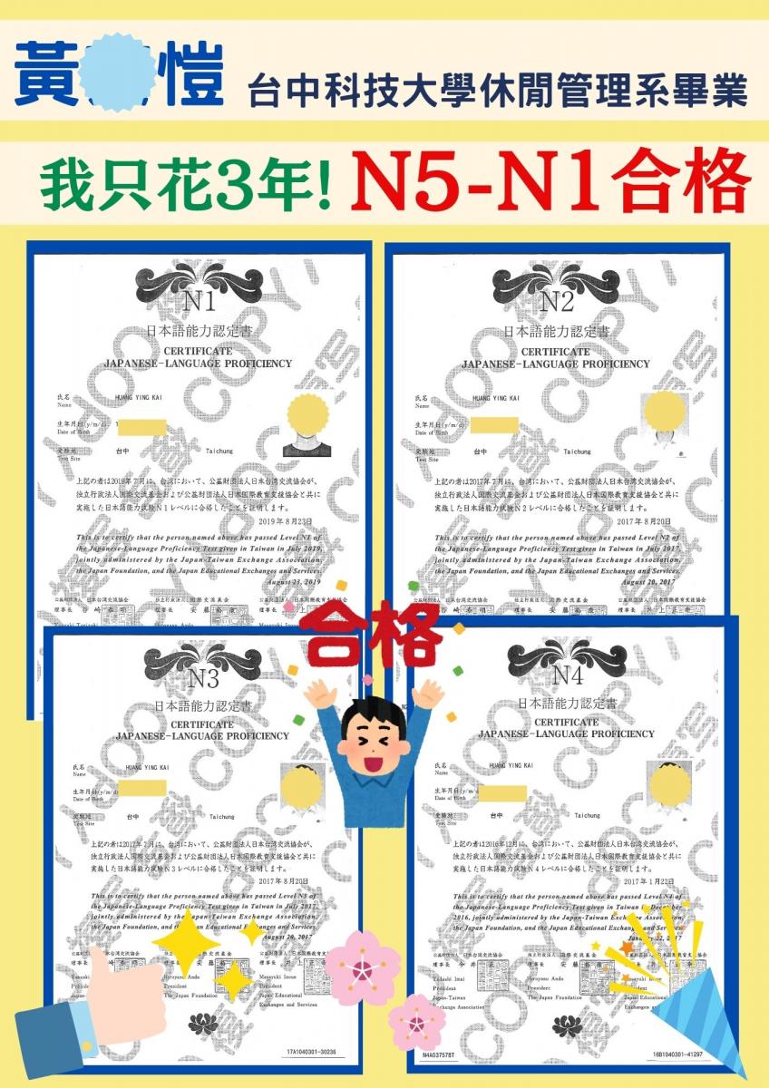 日檢合格 拿證書 !!!