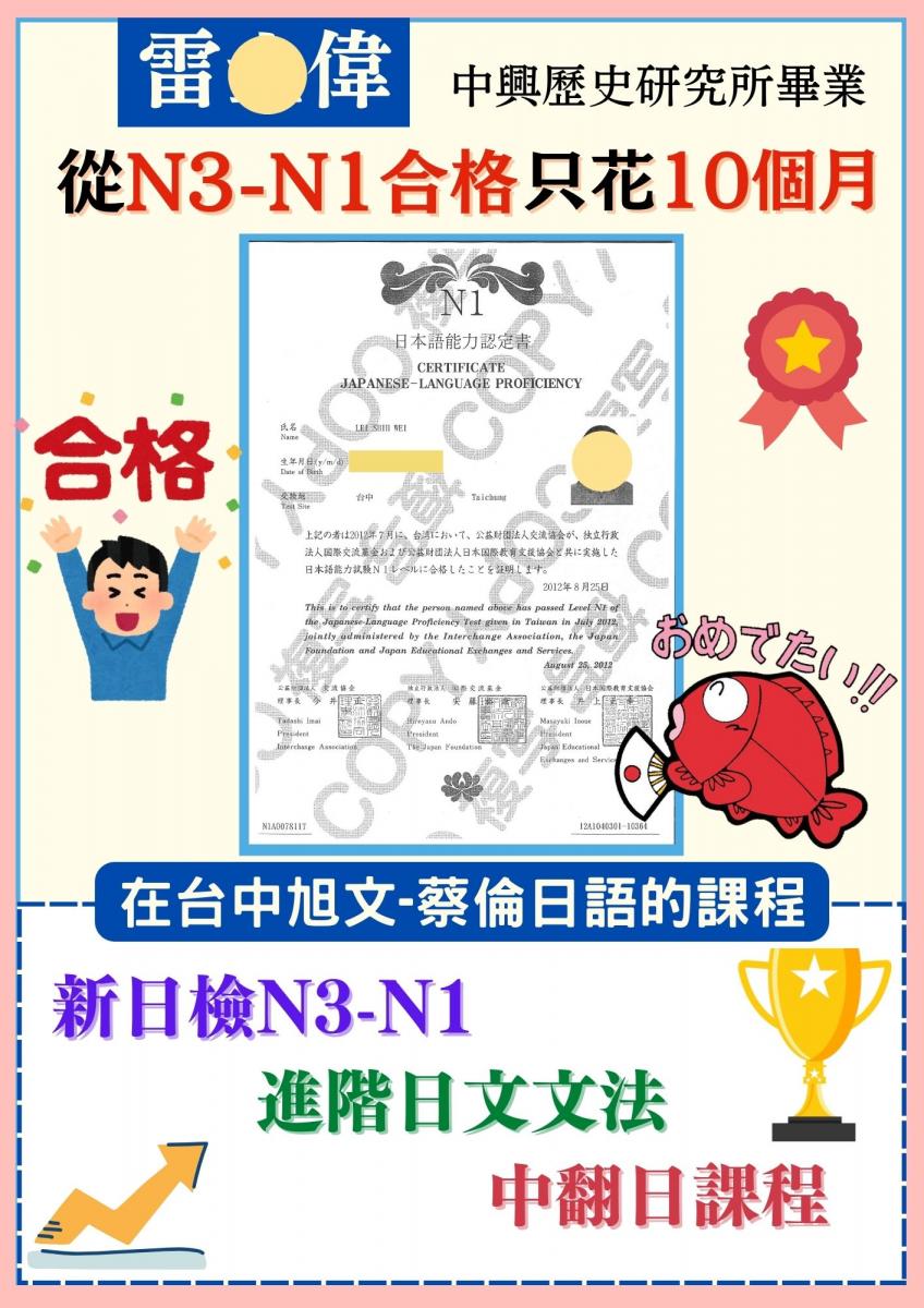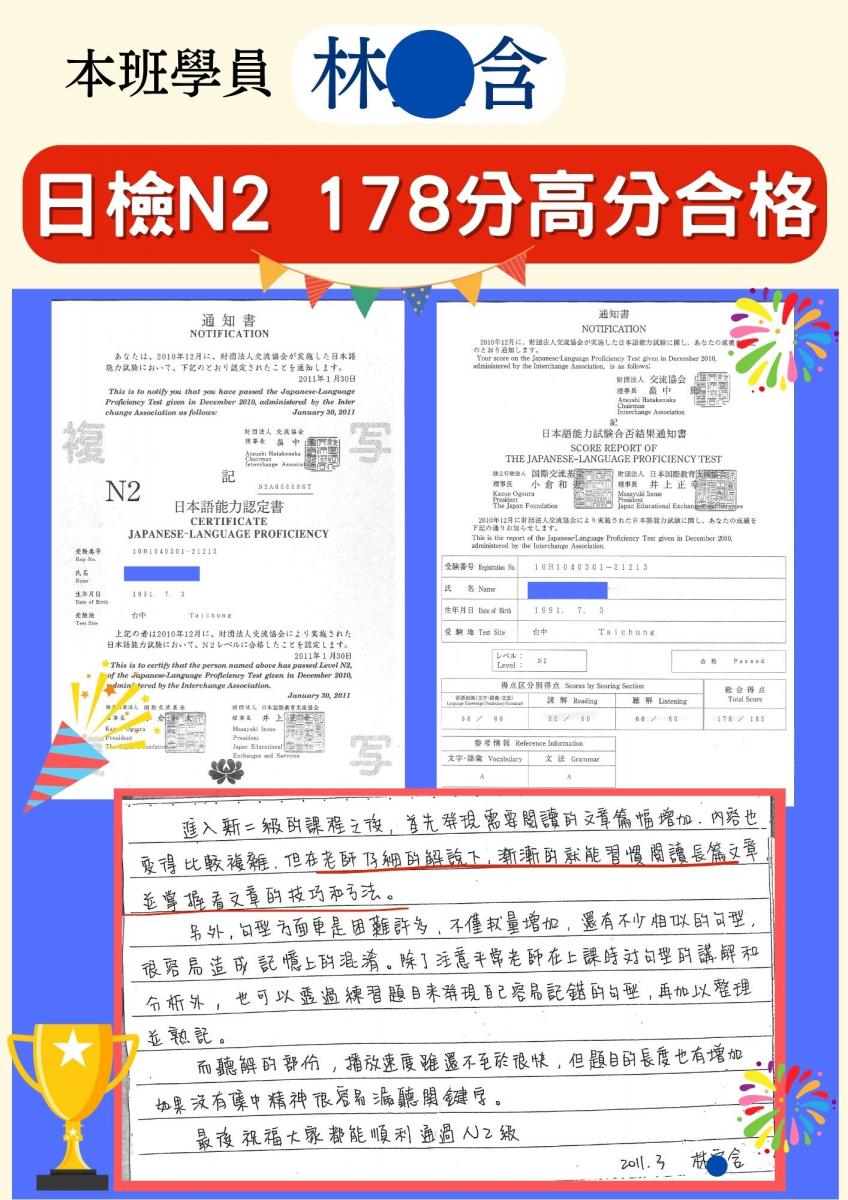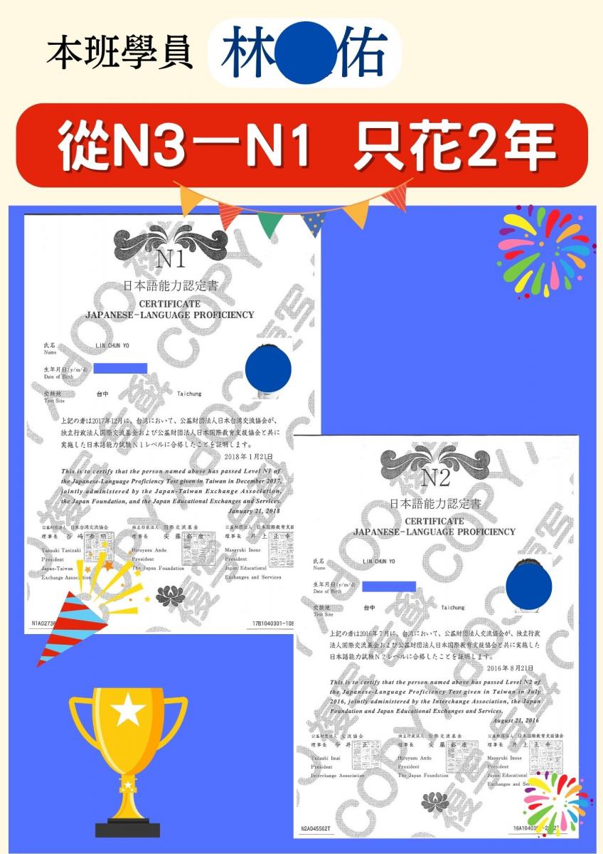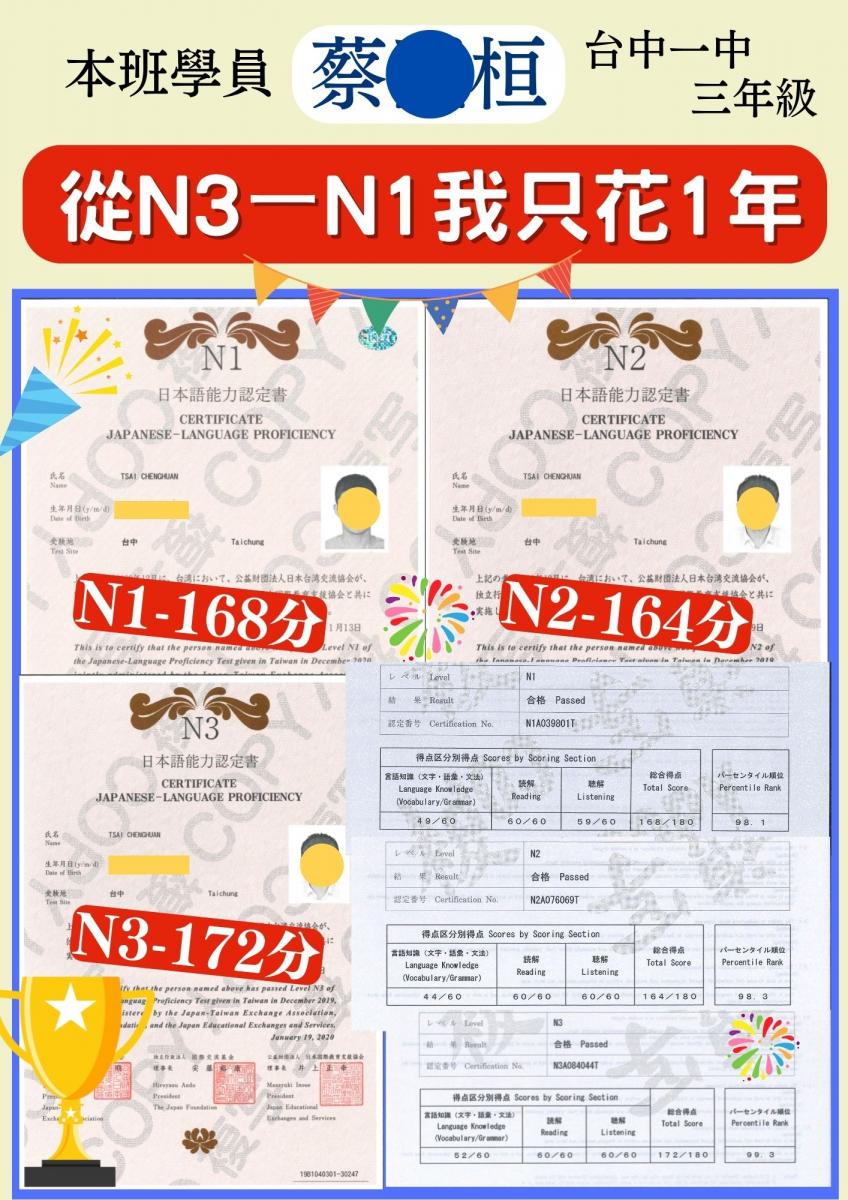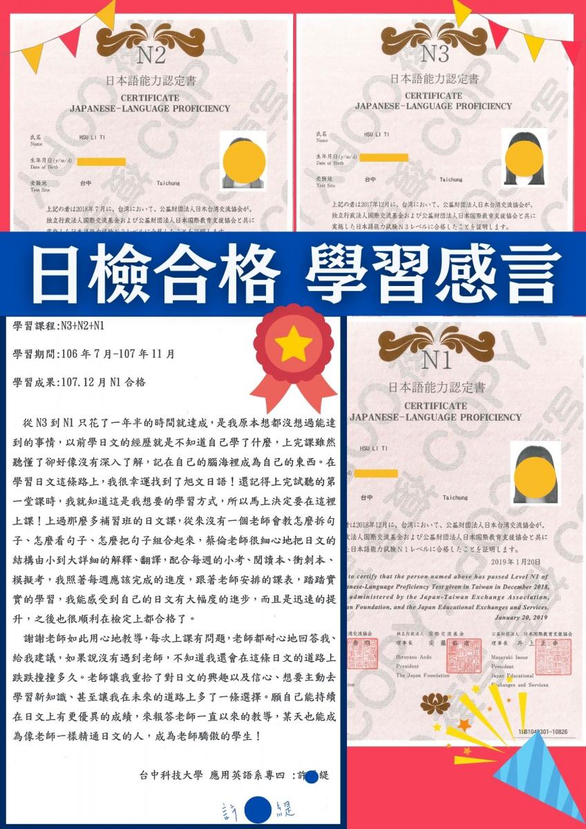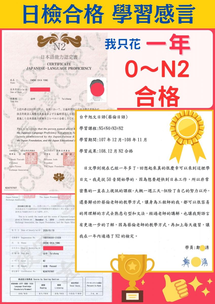 日檢合格 拿證書 !!!