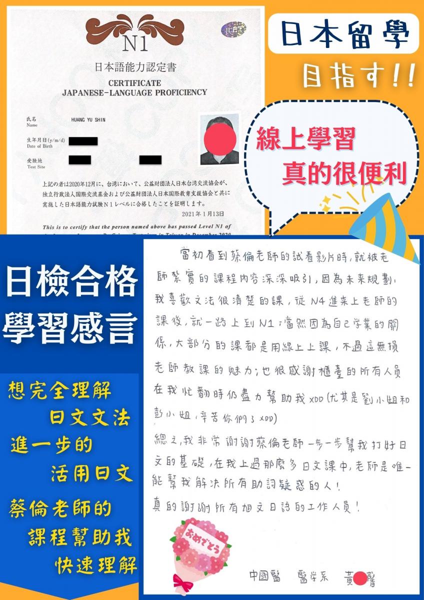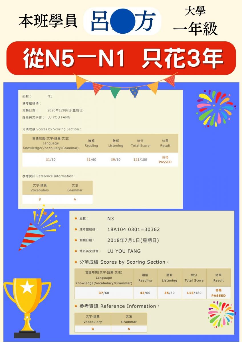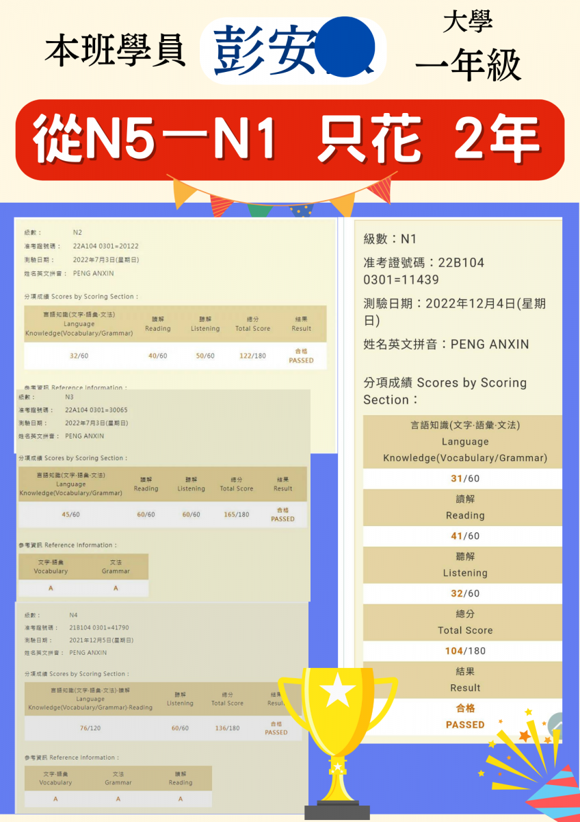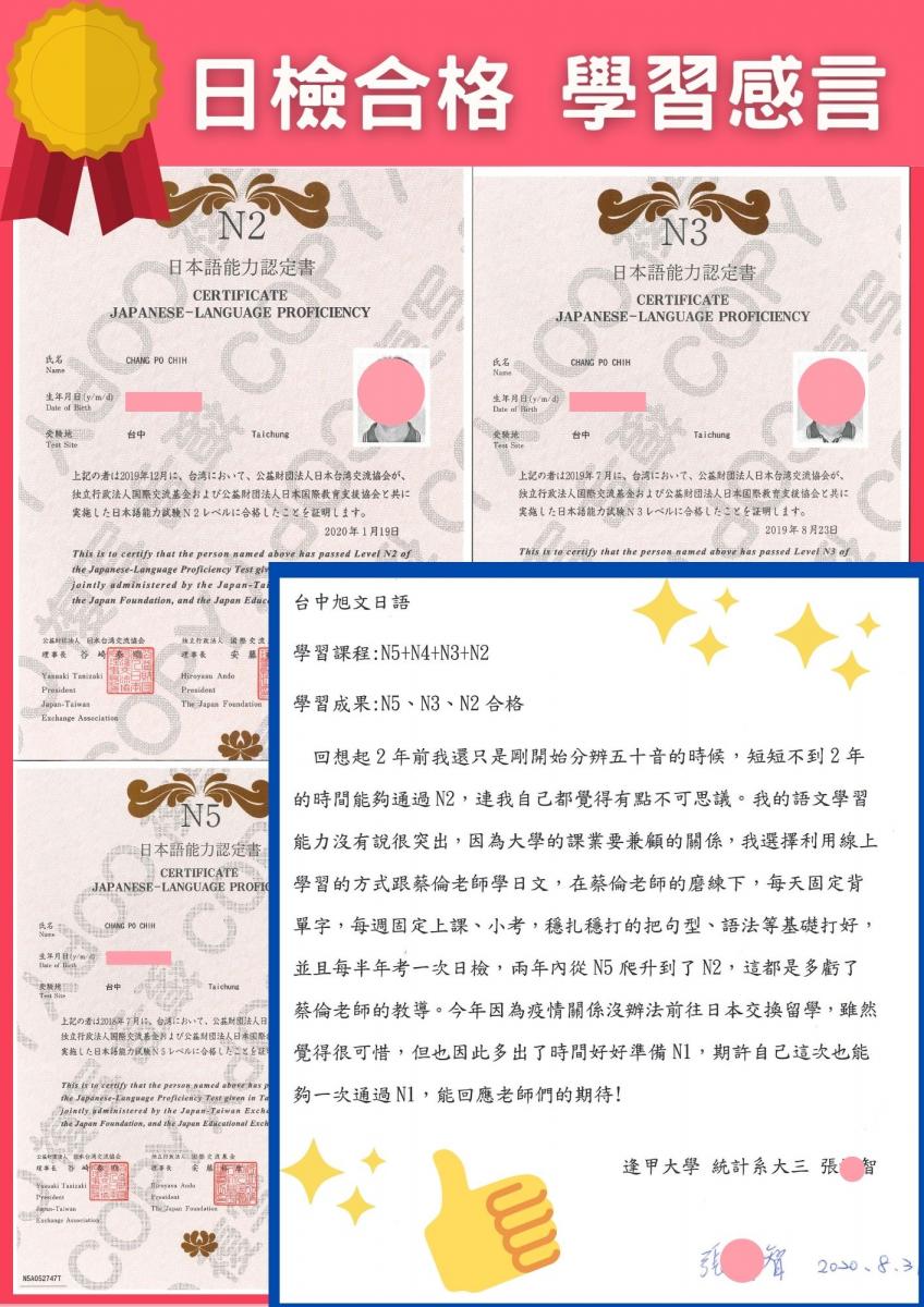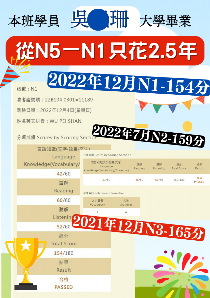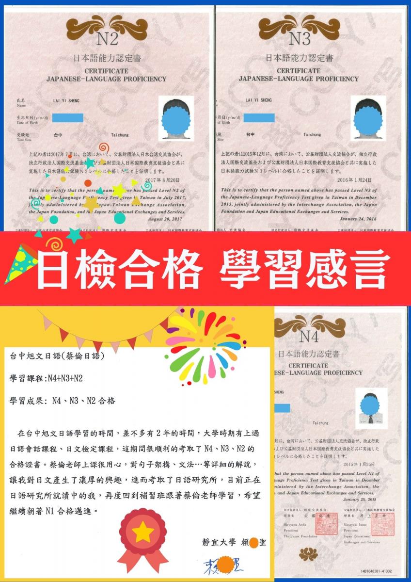 日檢合格 拿證書 !!!