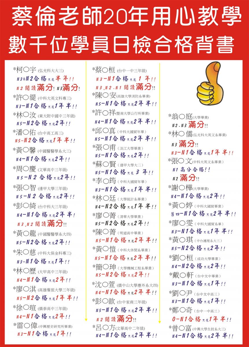 數千名學員 日檢合格背書