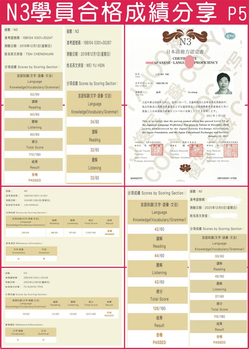 日 檢 合 格 拿 證 書 !!